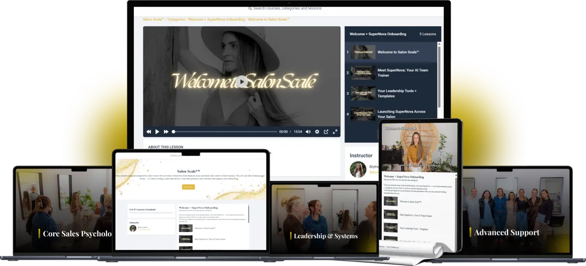 Plug-and-play. Not theory. Scripts, dashboards, meetings, AI, me. Not another fluffy course. Most business training is generic. Salon Scale is built specifically for the hair and beauty industry with psychology-based systems.
